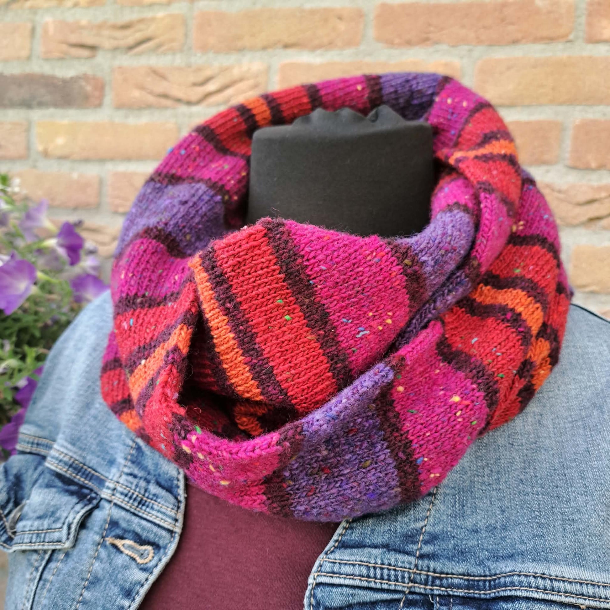 Deze vrolijke col is gebreid met de Soft Donegal met rondbreinaald 3,5. De tweed heeft leuke kleurtjes waar je helemaal vrolijk van wordt. De col kun je twee keer om je hals doen.