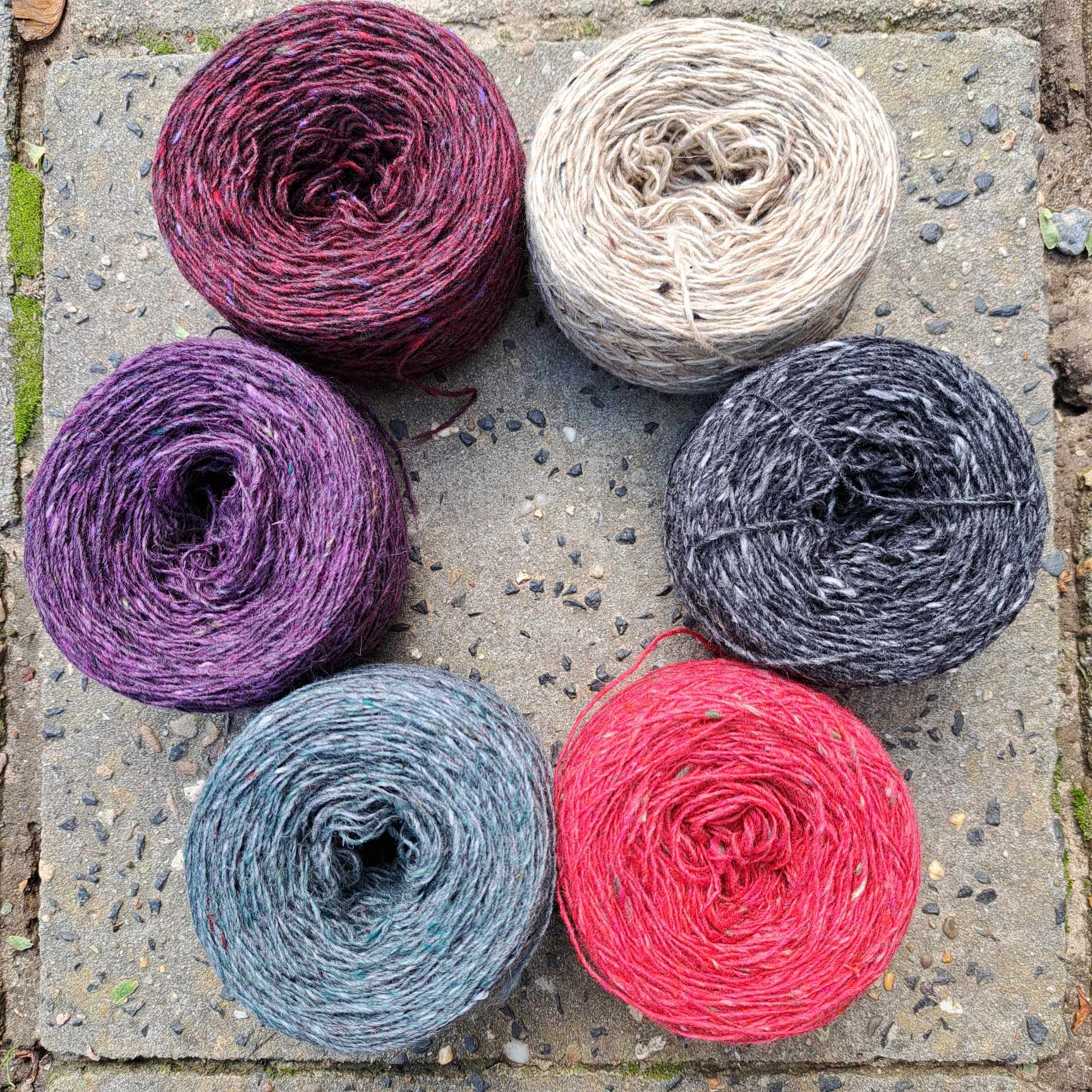 2712 Maple 150 gr, 2736 Honesty 150 gr, 2742 Riona 50 gr, 2708 Black Birch 50 gr, 2734 Bramble Stone 50 gr, 2715 Feather 50 gr.